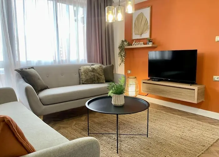 'City Center View' 2 Bedroom Apartmentアパ-トメントには,器具でいっぱいの台所,バルコニ-,衛星放送チャンネルの薄型テレビ と冷暖房付きの客室があります. アルバニア正教会は,この宿泊施設から0.9キロに位置しています.